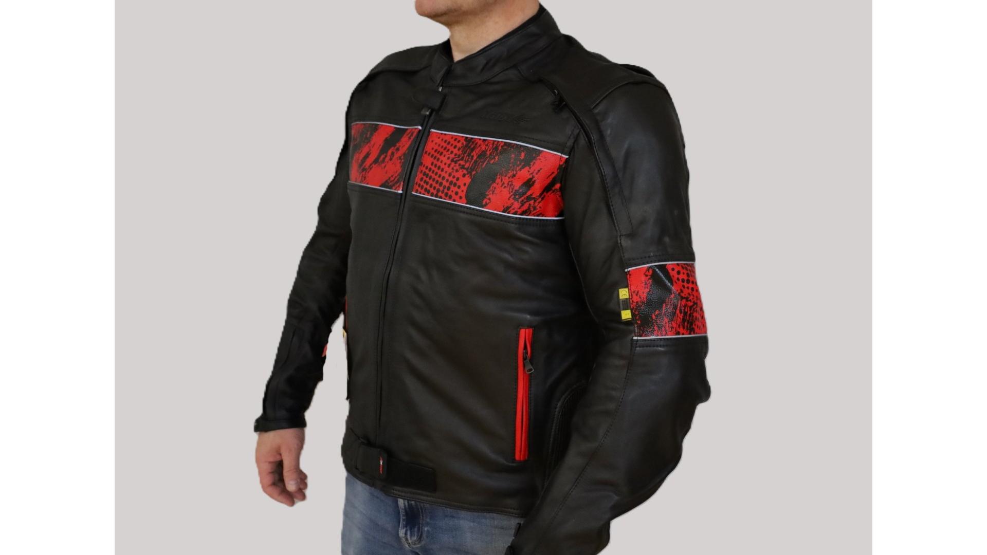 Kurtka motocyklowa, męska, skórzana, czarno-czerwona, rozmiar 2XL